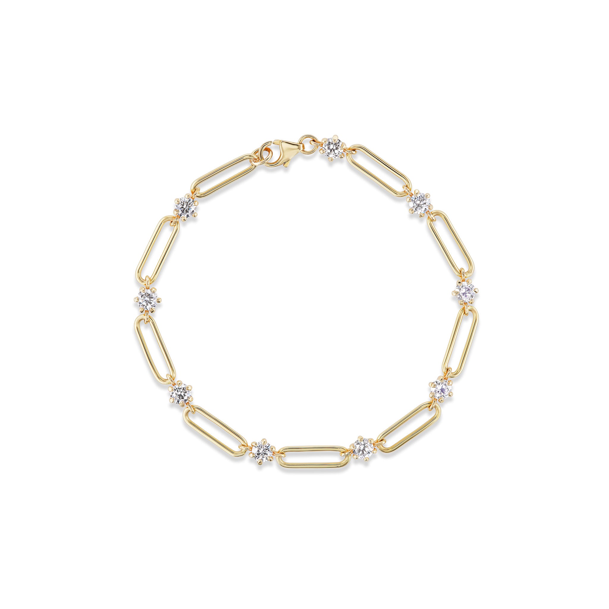 - Victorian-era inspired six-prong bezel settings hold each diamond in place, connected by an elegant open chain design.