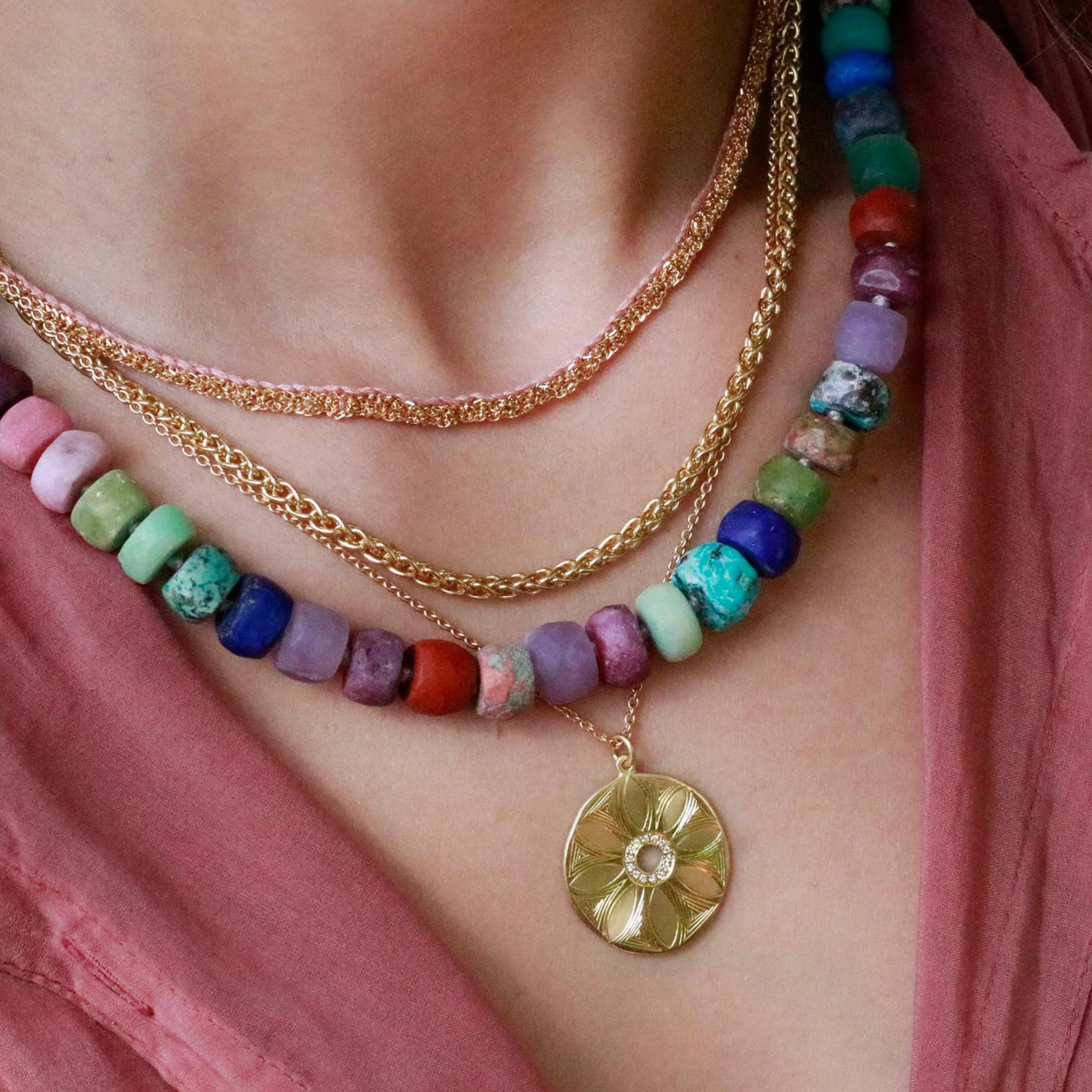 Brooke is highly respected in the world of fine, contemporary jewelry for her original creations and unmistakable use of color, with all jewelry hand made in London and Los Angeles with sustainability in mind. One-of-a-kind natural gemstones form the backbone of the Brooke Gregson aesthetic. Brooke’s jewelry is made with 100% recycled gold.