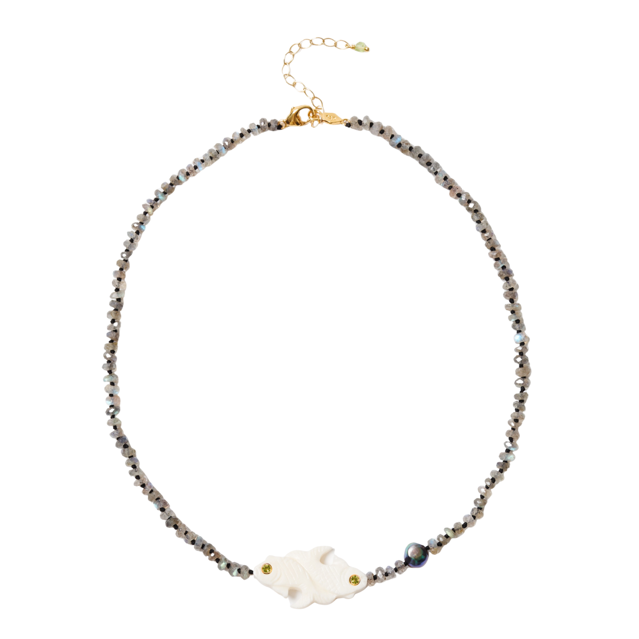 Carved Bone Fish Motif Necklace with Labradorite Beads