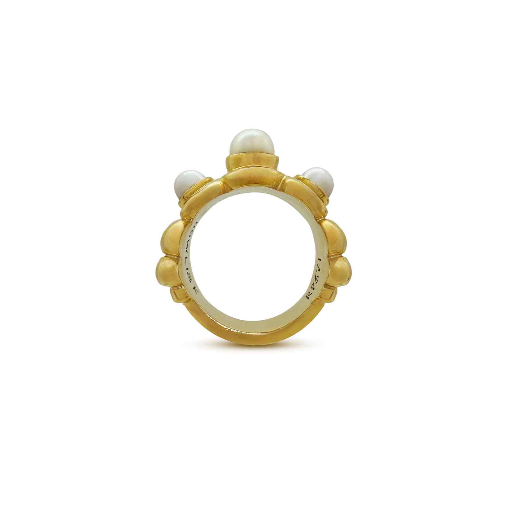 The Mago Pearl Ring is a testament to timeless beauty and unparalleled luxury. Crafted with precision and featuring a series of three, round, saltwater pearls, this piece captures the essence of charm and charisma.