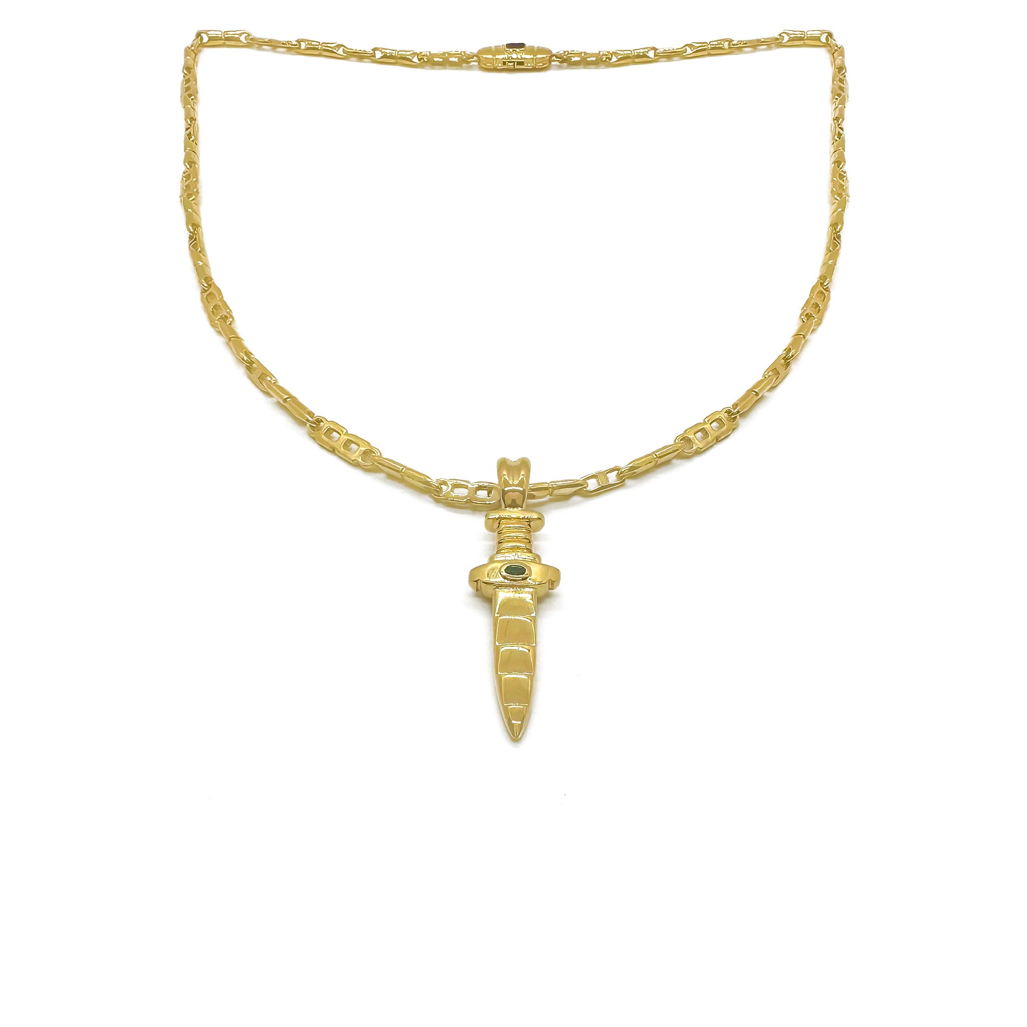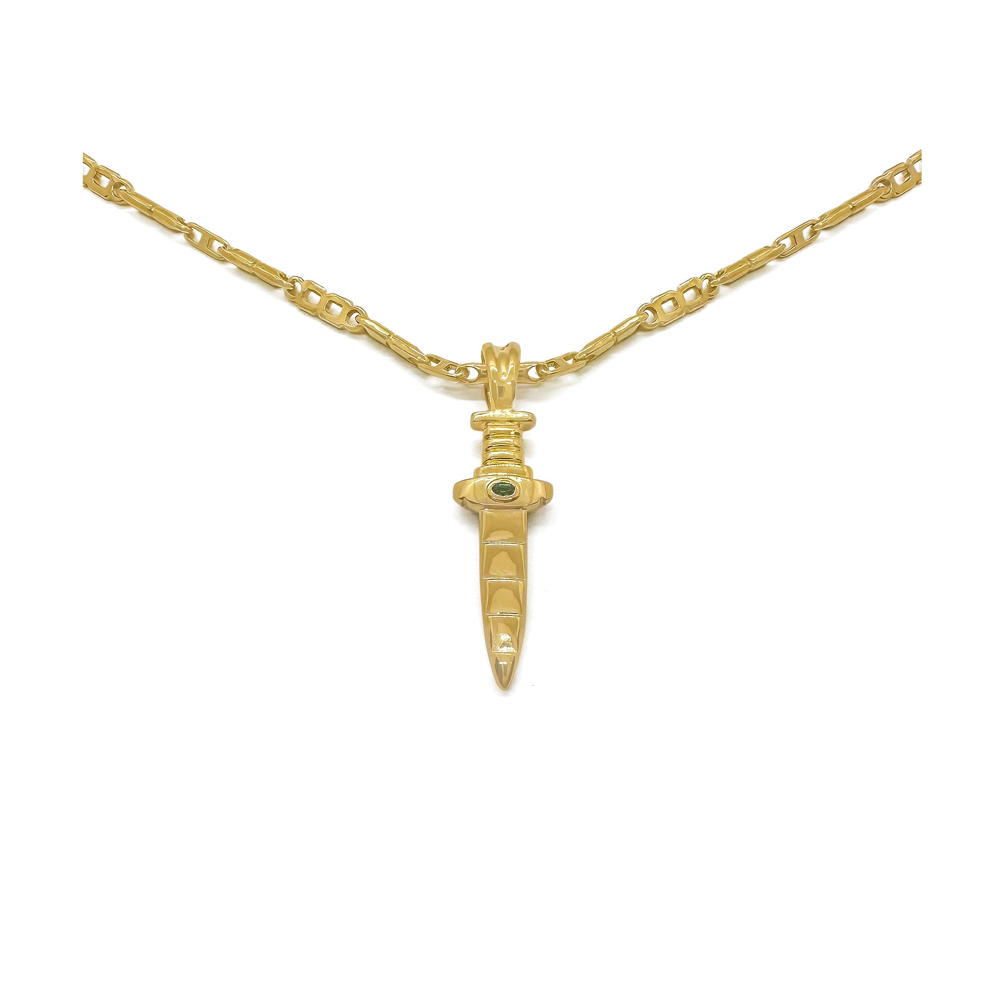 - The Dagger Pendant is a bold statement piece featuring a hand-carved dagger embellished with a Paraiba stone. Seen as strong symbols of protection, loyalty and sacrifice, the dagger motif is infused with spiritual significance.